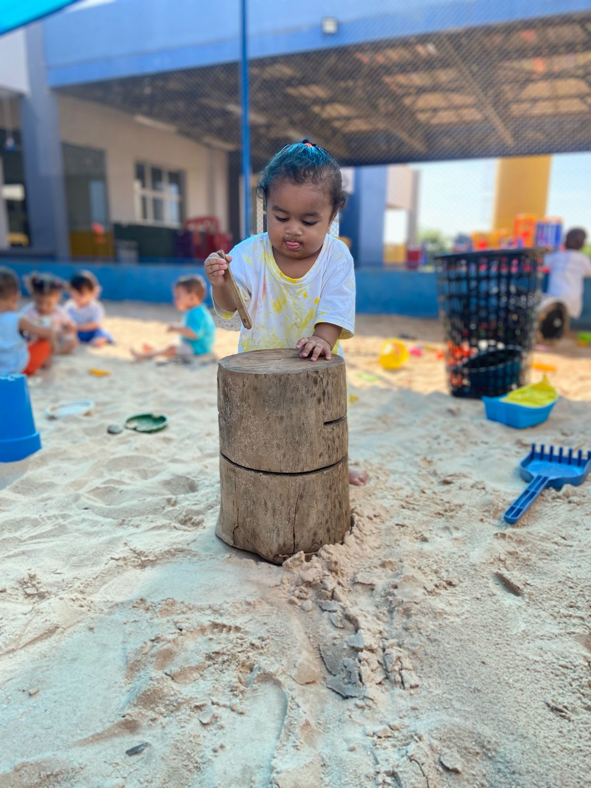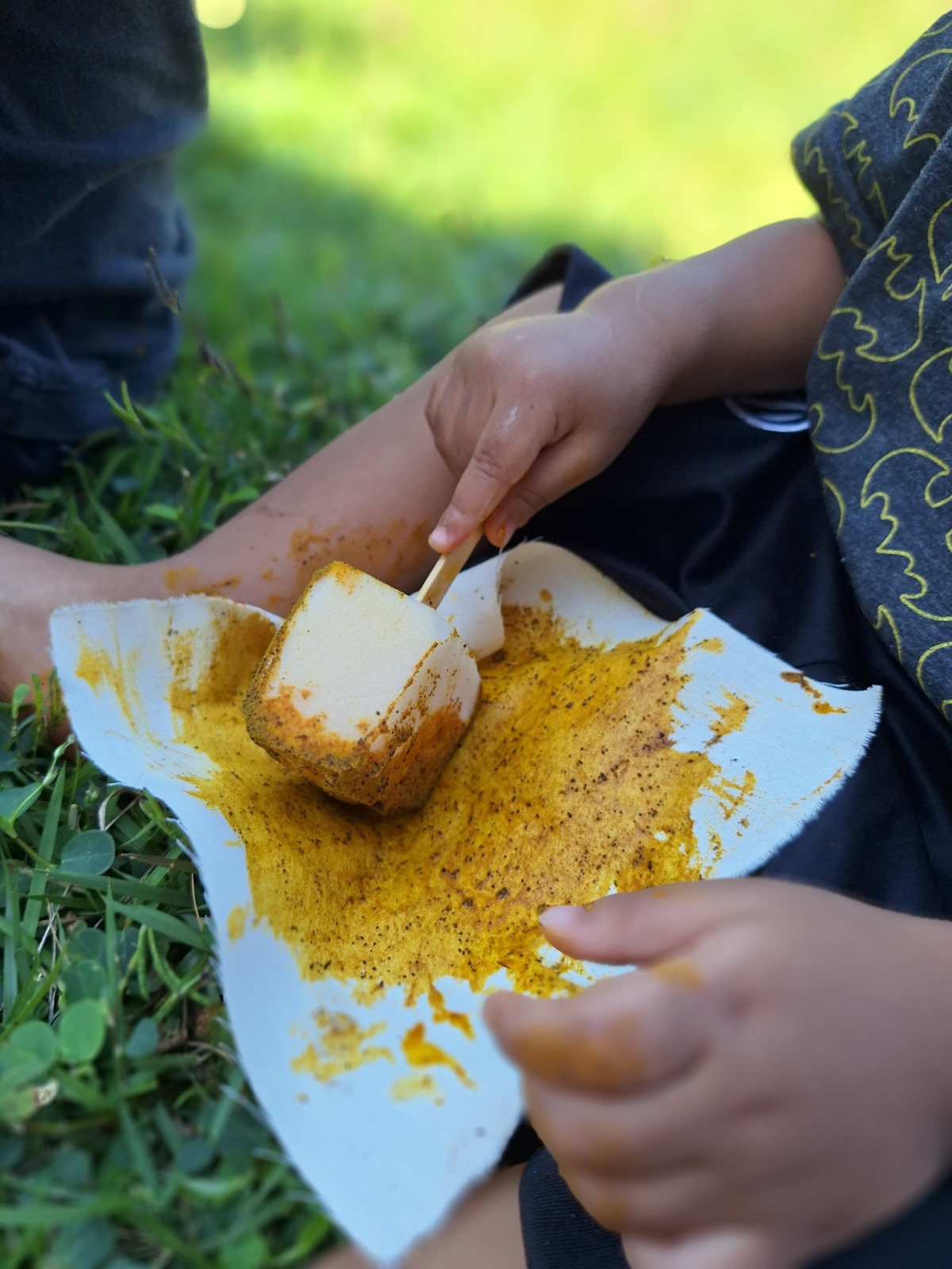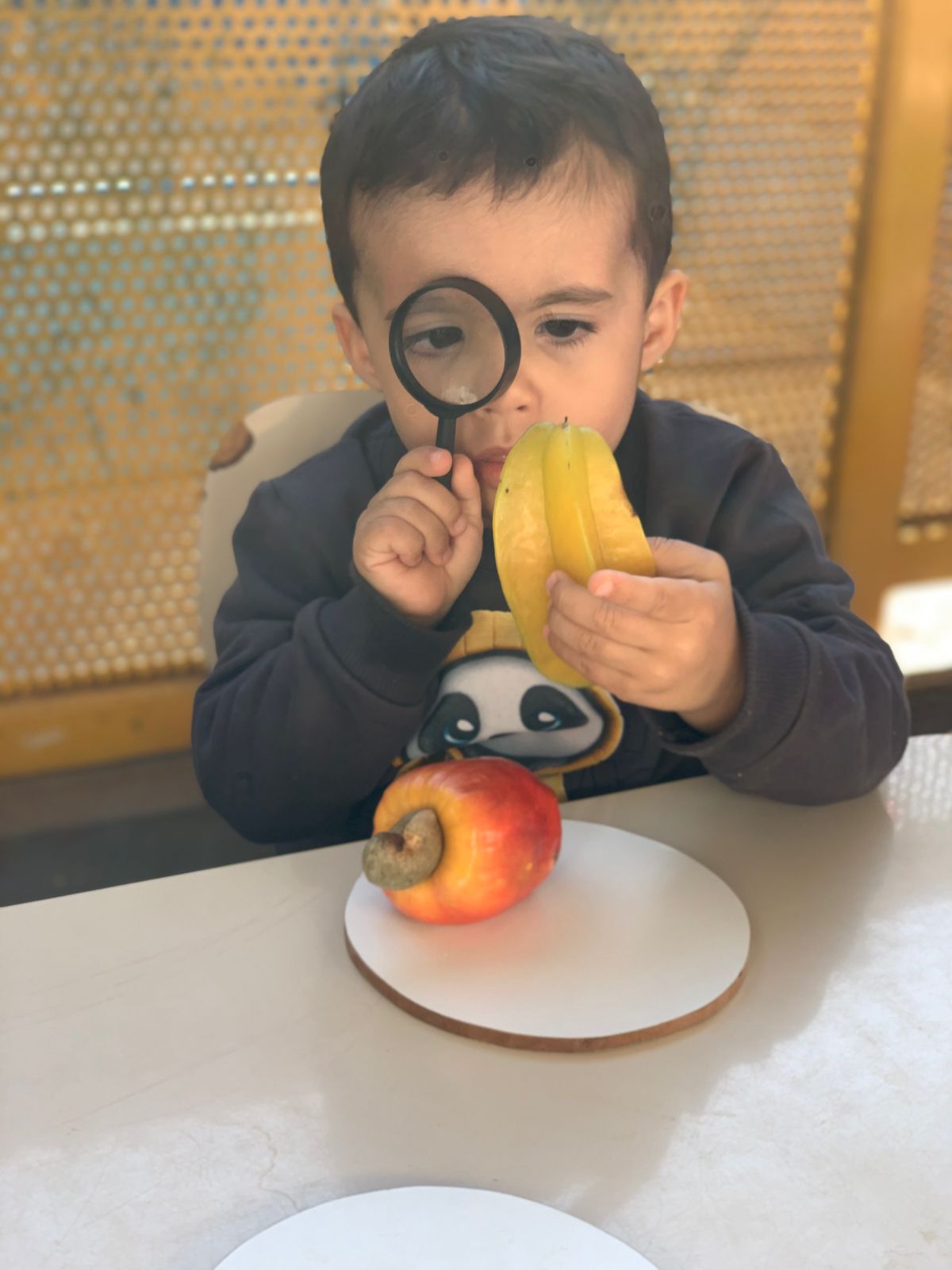 A proposta do projeto norteador também é fortalecida por pedagogias participativas e acolhedoras, que favorecem a escuta ativa das crianças e o protagonismo infantil. Nessa perspectiva, buscamos ampliar as possibilidades de aprendizagem através de materiais não estruturados, que incentivam a imaginação, a criatividade e a exploração livre; o brincar heurístico, que valoriza a curiosidade e o processo de descoberta; as experiências sensoriais com exploração de diferentes alimentos e elementos naturais; uso de tintas naturais, argila, sementes, folhas e outros recursos para atividades artísticas e de investigação.