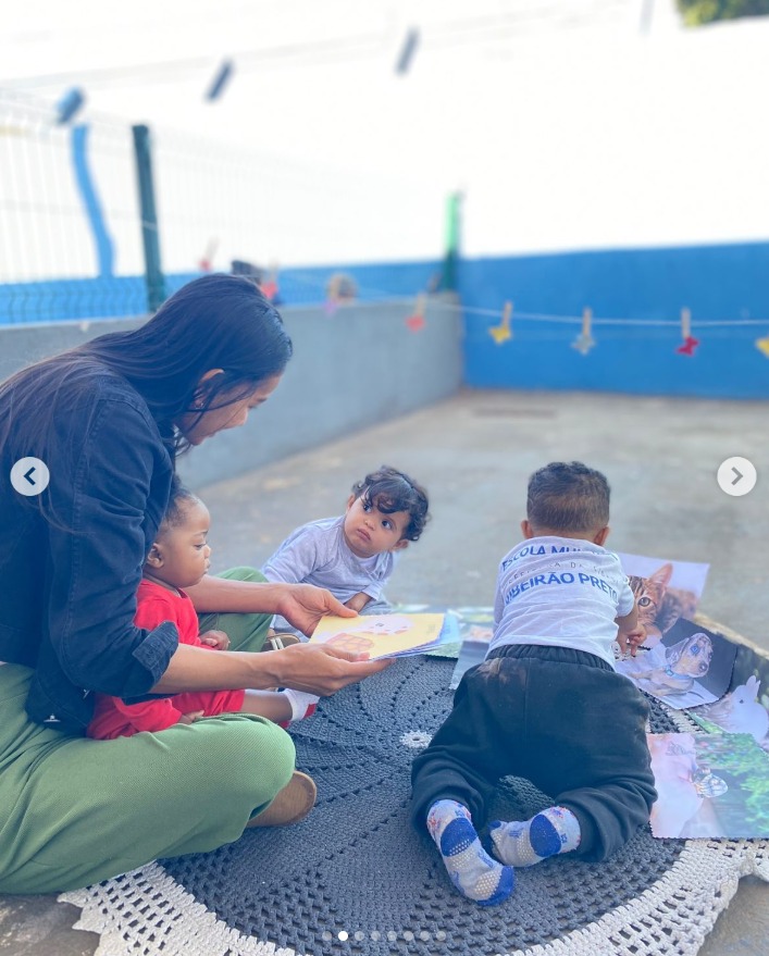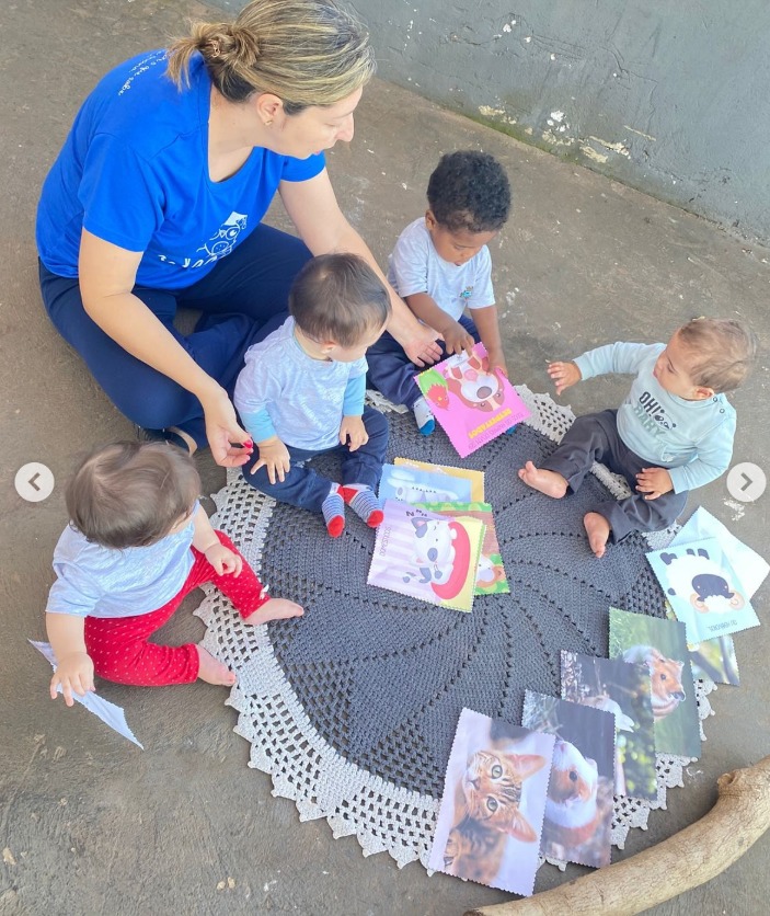 Nesta proposta, introduzimos o tema dos animais domésticos de forma lúdica e acolhedora para os bebês. A atividade foi acompanhada da leitura do livro “Animais diferentes, mas todos especiais”, de Renato César, que, com suas ilustrações e linguagem simples, encantou as crianças. Durante a leitura, os bebês demonstraram curiosidade, atenção e alegria, reagindo aos sons, imagens e nomes dos animais. A vivência favoreceu o desenvolvimento da linguagem, o vínculo afetivo e a ampliação do repertório sensorial e emocional.