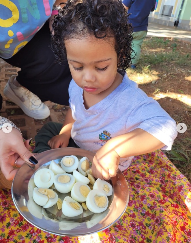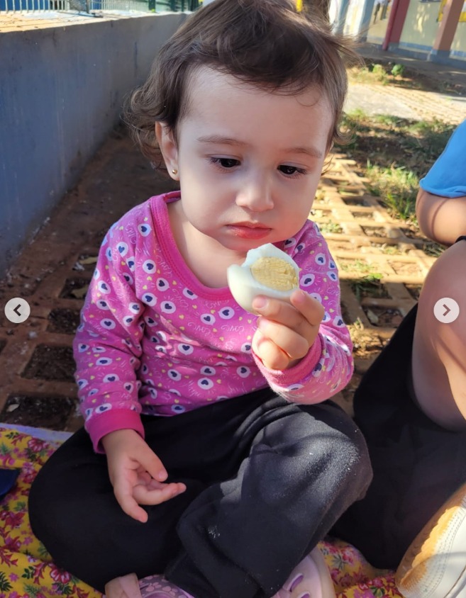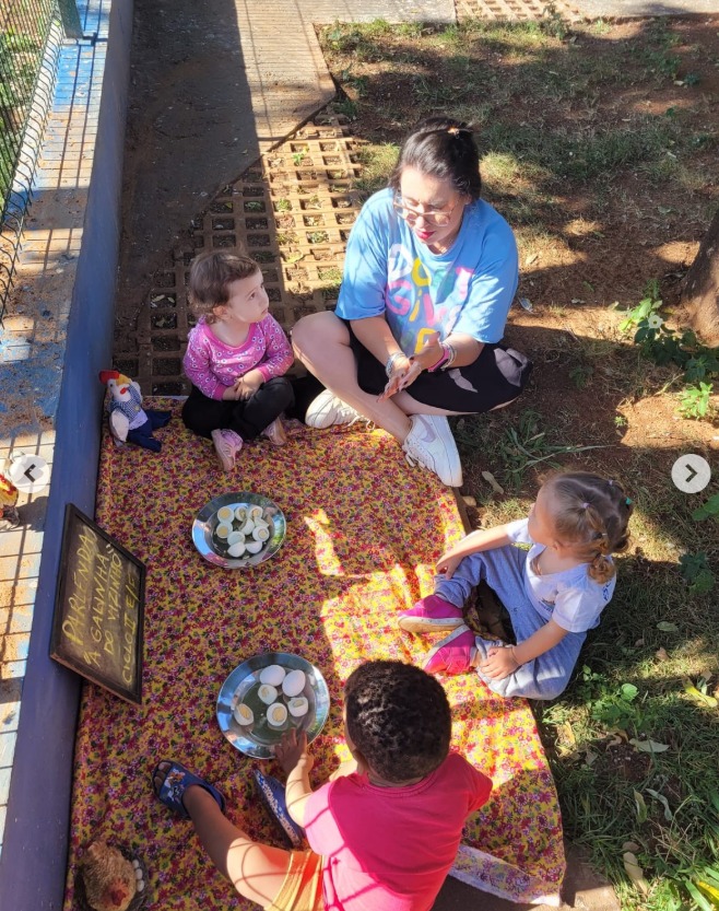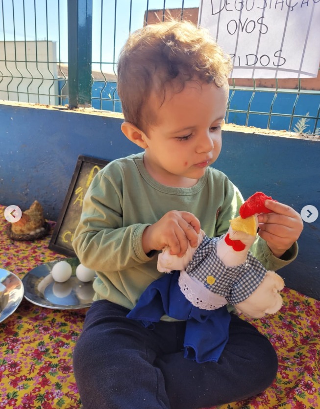 Às crianças tiveram a oportunidade de estimular os sentidos e a curiosidade alimentar com a degustação de ovos cozidos, relacionando o alimento ao imaginário da parlenda, tornando a aprendizagem mais concreta , significativa e incentivando bons hábitos alimentares desde a infância.